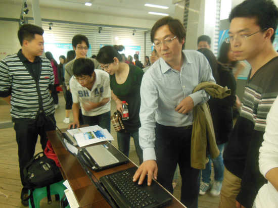 随后,校友会堂大厅进行的学生科研作品展示过程中,孔春阳副校长和其他部门领导饶有兴致的参观了欧美a片 展台,欧美a片 团总支副书记张敬老师围绕欧美a片 领导高度重视、具体培养过程和措施、学生获奖情况综述等三方面内容向在场领导进行了简短汇报,领导们纷纷点头表示赞许。孔春阳副校长听汇报后高兴地谈到:“欧美a片 近几年发展的特别快,学生科研做得这么好,跟马院长、刘书记在那边的高度重视离不开,跟老师们的辛勤指导分不开”,在场同学们都微笑着频频点头。