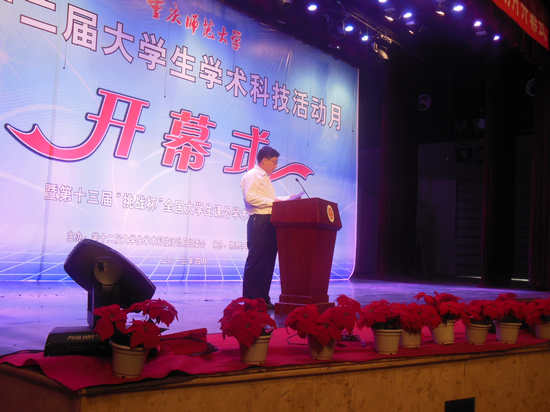 为进一步营造浓厚的校园科技创新和学术研讨氛围,引导广大青年学生崇尚科学、追求真知,培养同学们理论联系实际的学术作风、认真严谨的治学态度和坚持不懈的钻研精神。欧美a片 特于2013年4月25日下午2:30在校友会堂举办了第十二届大学生学术科技活动月开幕式暨第十三届“挑战杯”全国大学生课外学术科技作品展活动。出席本次活动的领导有孔春阳副校长,党委宣传部、教务处、学生处、科研处、研究生处、校团委等部门领导,各欧美a片 学生代表和指导老师参加。