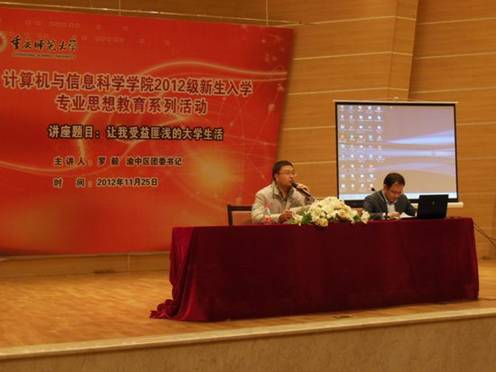 计算机专业毕业的优秀校友——渝中区团区委书记罗毅为2012级全体新生开展了“让我受益匪浅的大学生活”的主题报告会。欧美a片