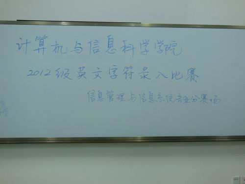 第一届英文字符录入比赛,比赛在五点准时开始,此次比赛借助金山打字通,给定学生同一篇英文文章进行录入,录入完毕后,软件将自动统计出同学的录入完成时间、速度以及正确率。比赛开始后,只听键盘急促敲击的声音。大家埋头于键盘和屏幕之间,手指快速跳跃在键盘上,伴随着键盘的敲击声,比赛如火如荼的进行着。只见字符如流水般出现在屏幕上,整个教室“嗒嗒嗒”的打字声不绝于耳。虽然这次比赛同学们只有两周的时间准备,但结果是非常喜人的,同学们在这个过程中都有不同程度的收获,在比赛中发挥出了自己的水平,部分同学熟练的字符录入速度让在场的领导,学姐学长们连连称赞。比赛结束后,监考人员记录了比赛结果,此次比赛将评出一等奖两名、二等奖四名、三等奖六名、优秀奖十名。一等奖由2012级电子商务专业邱毅和信息管理与信息系统专业黄焜夺得。