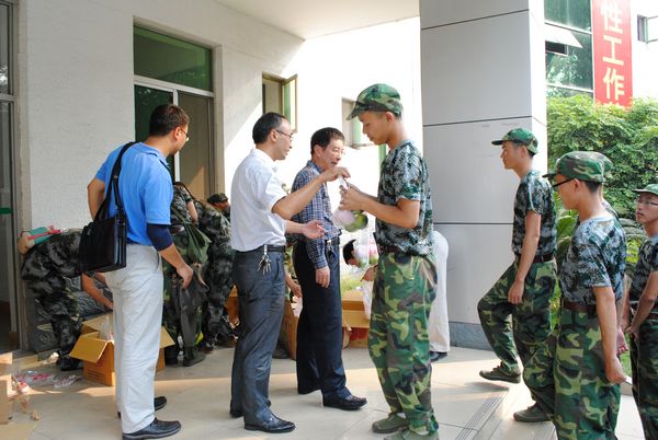 2012年9月19日下午,经过一个多小时的车程,欧美a片 马燕院长、刘军书记、魏延副院长、杨宇副书记、办公室罗世祥主任、学工办张敬副主任及安博教育集团教学质量管理刘老师一行来到南坪八公里77109部队,慰问欧美a片 新生。