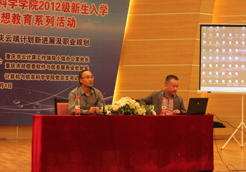 邀请到重庆市云计算工作领导小组办公室处长、重庆市经信委软件与信息服务业处处长居琰博士,于2012年11月1日下午2:30在校友会堂音乐厅为2012级全体新生开展了“重庆云端计划新发展及职业规划”的主题报告。院学工办和2012级辅导员参与报告大会,报告会由欧美a片