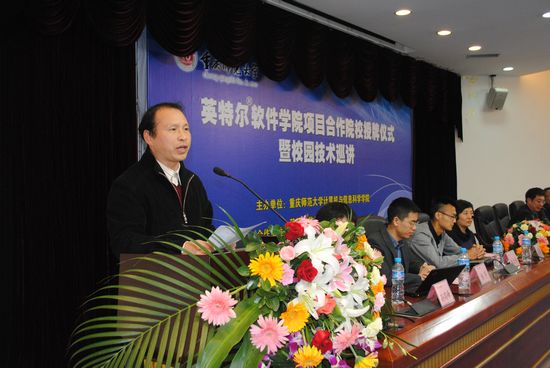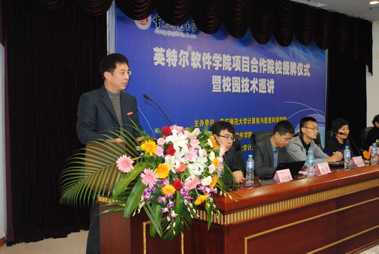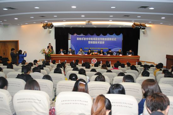 授牌仪式结束后,Intel的资深专家程大伟先生举行了Intel相关知识的讲座,向大家展示了高端的科技成果。