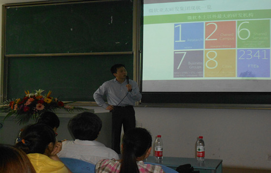2012年5月10日下午2:30,弘德楼5203教室座无虚席,微软亚太研发集团战略合作与外包事业部副总监王帅来到欧美a片 作了一场题为“微软软件服务外包人才标准”的讲座,与欧美a片 近200名学子分享了微软软件服务外包的当前形势。参与讲座的还有重庆邮电大学软件欧美a片 院长钱鹰教授、张力生副教授及欧美a片 部分教师代表。