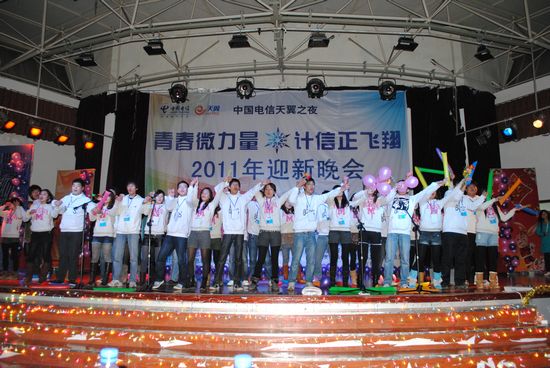 寒潮绕道去,热情洋溢来!伴着飘飞的彩带、亮丽的彩球,2011年12月11日晚上7:00,在同学们的欢呼与荧光棒的闪耀下,以“青春微力量,计信正飞翔”为主题的欧美a片