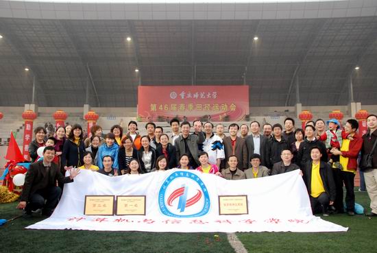 继去年第四十五届春季田径运动会,新欧美a片 第一次亮相田径场便获得教工团体总分第一名、体育精神文明奖后,本次田径运动会再次蝉联教工团体总分第一名和体育精神文明奖!