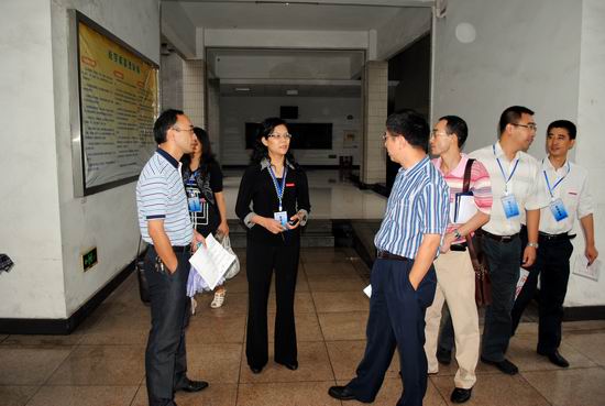 在教学楼下,欧美a片 领导向检查开学情况的欧美a片 领导龚燕副书记