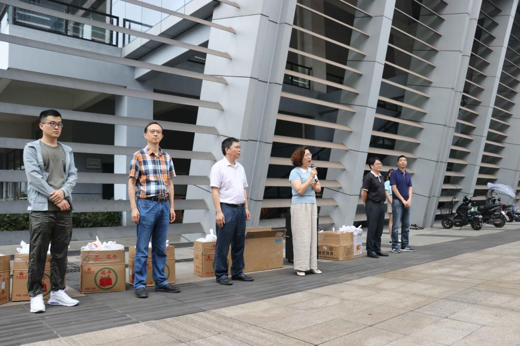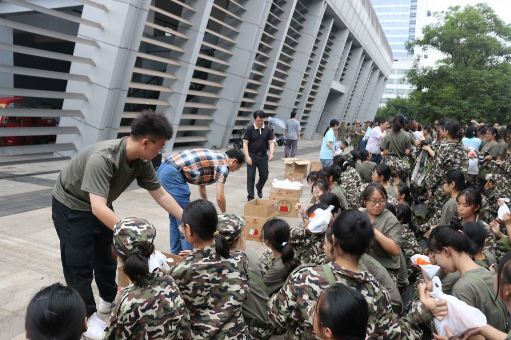 领导及团学会成员为新生分发军训慰问品,送上的不仅是一份军训慰问礼物,更是一份来自欧美a片