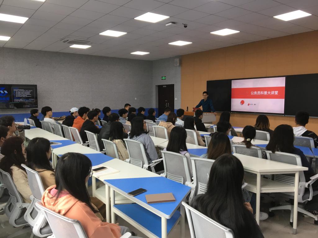 学生作了关于“公务员科普大讲堂”的专题讲座活动。全院各学段(大三为主)40余人参加本次专题讲座。本次讲座邀请到重庆中公教育谭兵老师进行讲解。