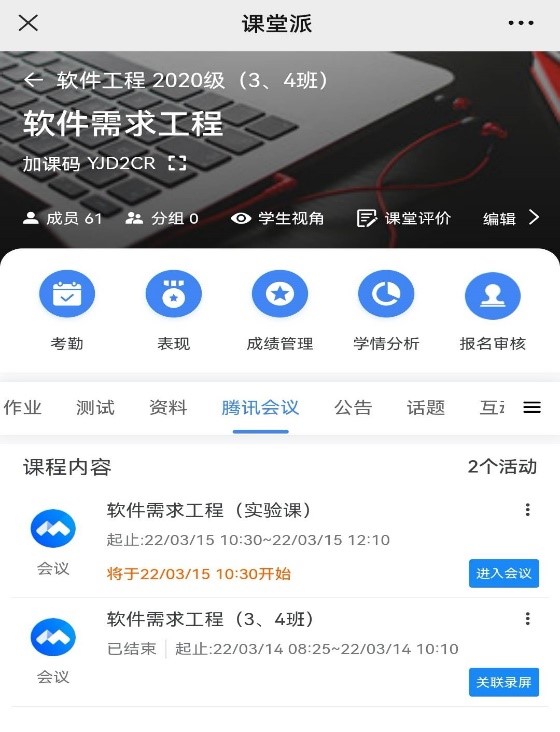 开展线上教学的要求,快速响应,积极准备,采用学习通、QQ群课堂、腾讯会议、钉钉群等网络平台和工具开展线上教学。3月14日,线上教学第一天,教学过程整体平稳,秩序井然,圆满完成了教学任务。