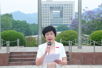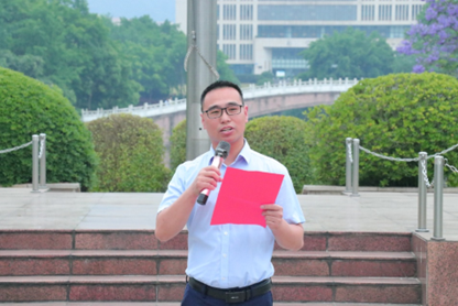 在国旗护卫队的护送下,升旗手步入升旗台,伴随着激昂雄壮的《义勇军进行曲》,鲜艳的五星红旗冉冉升起。全体人员向国旗行注目礼并高唱国歌。紧接着,陈兰书记以《学习党的二十大精神,争做新时代好青年》为题作国旗下的主题发言,号召同学们要以学习贯彻党的二十大精神为动力,牢记习近平总书记对青年的嘱托,坚定理想信念、传承奋斗精神、勇于追梦担当,做有理想、敢担当、能吃苦、肯奋斗的新时代好青年。