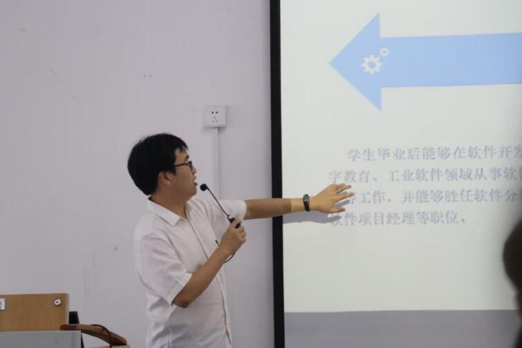 副院长冉瑞生,软件工程系系主任冯骥,智能科学与技术系系主任朱德利、闫登卫老师、宋婷婷老师,计算机科学与技术系系主任牛彦敏、陈勇老师等多位教师参加,2022级计算机大类全体学生参加,辅导员胡绍宇主持会议。