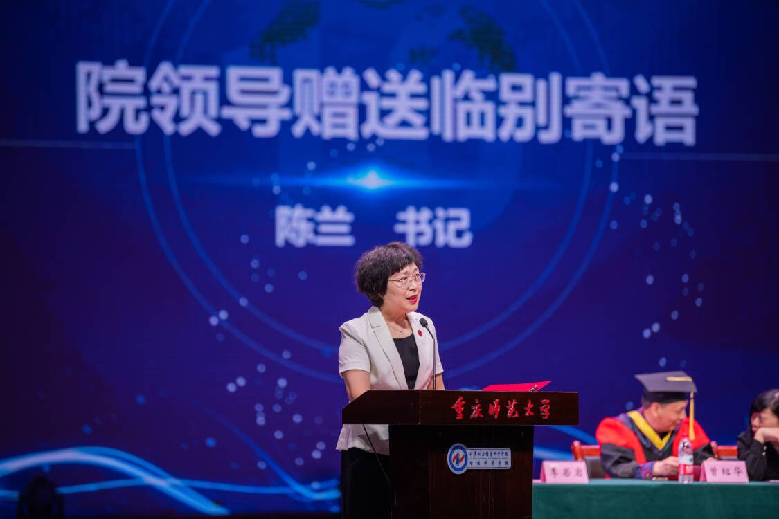 离别之际,陈兰书记致辞,她嘱咐同学们在前行路上,请将大爱守护精神家园,将学习养成终身习惯,并保存谦虚乐观豁达之心。鼓励同学们要无畏困难,谱写人生的美好篇章。冉瑞生副院长宣读《欧美a片