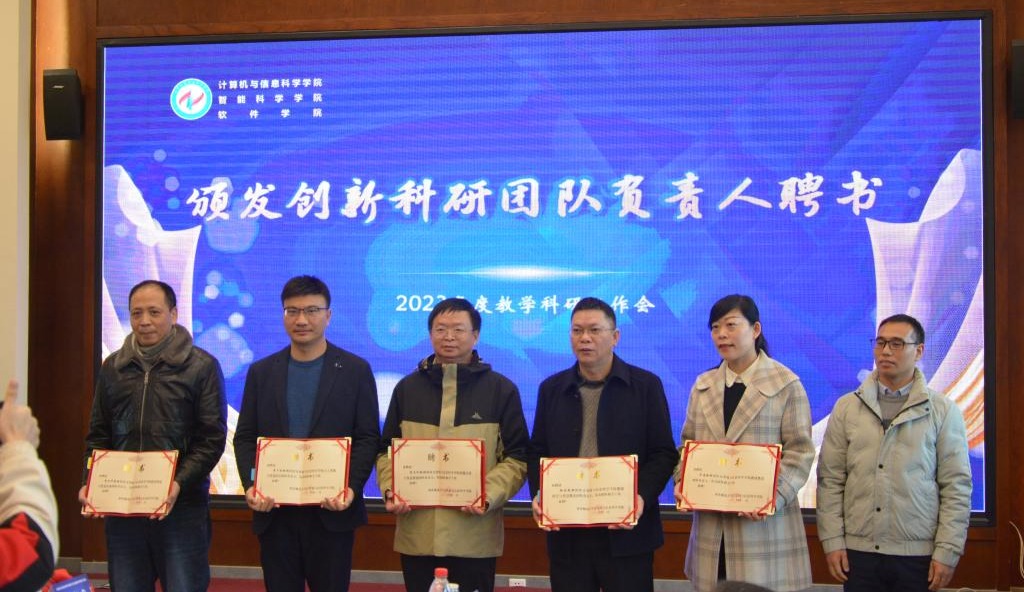 会议还对获得2023年度教学、学科工作突出贡献奖的个人进行了颁奖;为新成立的5个创新科研团队负责人颁发聘书。