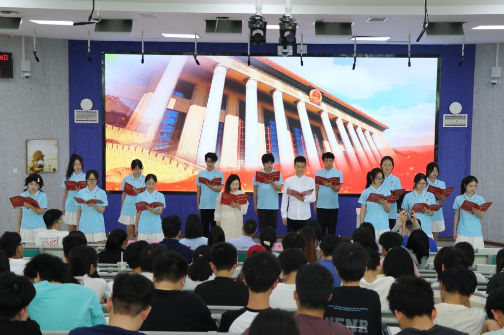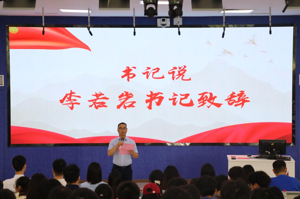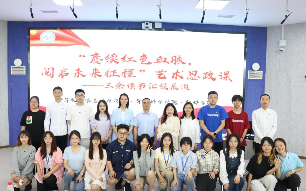 艺术思政课有书记说、青年说、读者说、教师说、学长说、校友说、青年说七个流程,并回顾了“三余”读书的历程与成果,进行了“三余”读书活动的表彰。李若岩副书记为思政课开讲,拉开活动序幕。他期待能够和同学们一起在书籍的海洋里遨游,在教学相长中感受阅读的魅力。何晓蕊校友分享了她的成长经历和人生感悟,教导同学们“立身以立学为先,立学以读书为本”,将阅读所获内化于心、外化于行。徐欣老师向同学们推荐书籍《人类简史》,希望同学们在阅读过程中能养成读书习惯,通过读书丰富精神世界、提升精神境界。本科生第三党支部书记钟华老师、宣传委员王宇航老师带领党团先锋岗成员朗诵《如果信仰有颜色》,她们充沛饱满的感情、铿锵有力的朗诵展现出计信师生良好的精神风貌,将课程推向了高潮。读者们也纷纷分享了读书心得、读书笔记和方法,推荐了优秀作品。