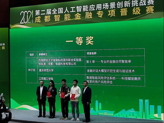 王超副教授指导研究生王斌、朱厚羿、王宗辉等组成团队,将智能体(Agent)、Prover-Verifier Games和Retrieval-Augmented Generation技术相结合,通过系统化结构有效缓解了输出幻觉问题,提出金融对话大模型可控生成与验证技术参加比赛,成功通过网络选拔赛,最终在本次晋级赛中斩获一等奖。