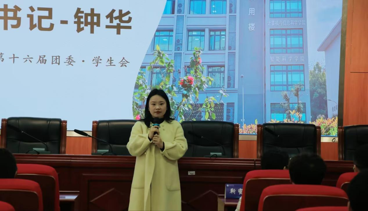 述职大会上,钟华老师全面总结了2024至2025学年上学期的工作,并对新一学期的团学会工作提出期望和指导。第十六届团委学生书记张婷、学生会主席团成员姚苏晏等四人以及第十六届团委学生会十二个部门代表分别进行述职,全面梳理了各项工作成果,从各部门专项工作的顺利推进到指标的圆满达成,都有可圈可点之处。同时,也深入反思了工作流程中的不足,细致总结了宝贵的经验教训,为未来的工作优化筑牢根基。