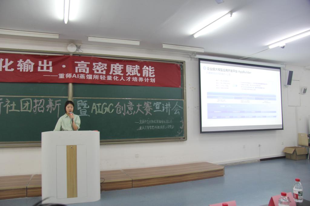 在砺志楼T2113教室举办了“AI蒸馏所重师站招新暨AIGC创意大赛宣讲会”。活动由欧美a片
