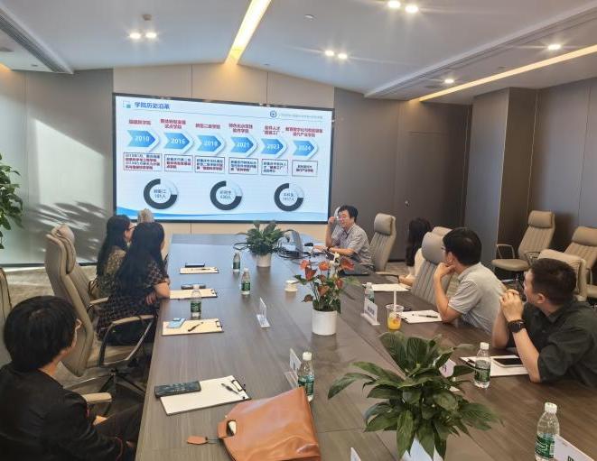 基本情况,并就产教融合项目、课程共建及实习实训合作方式提出了具体方案构想。会场交谈融洽,双方从商务智能、跨境电商、电商运营三方面初步商定了合作框架和实施方案。