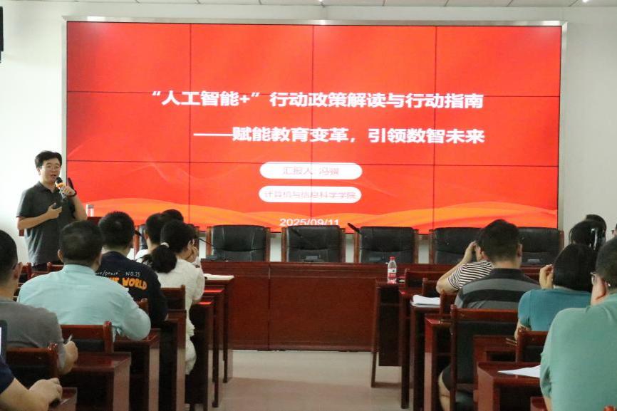 召开《国务院关于深入实施“人工智能+”行动的意见》(后简称《意见》)解读研讨会。副院长冯骥以《赋能教育变革,引领数智未来》为题进行专题宣讲,系统阐释了国家人工智能战略的核心要义,深入分析了欧美a片