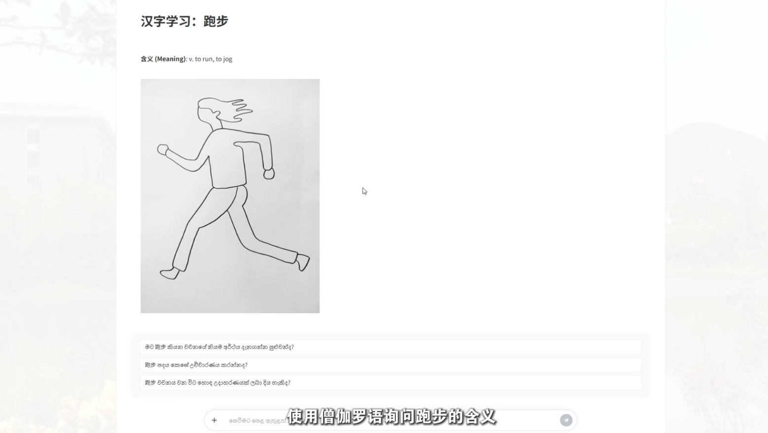 “师道汉韵”正在逐步成长为全球中文学习者最贴心的智能助手,支持多语种(包括英语、僧伽罗语、卢旺达语等小语种)直接交互。能够精准响应学习者用母语发起的查询,快速提供目标汉字或词语的完整学习包:中外文对照释义、配图辅助理解、标准拼音与可点播的清晰发音、动态笔顺书写视频、来自教材与真实生活的场景例句,帮助学习者在碎片化时间里高效完成从“认读—发音—书写—应用”的闭环掌握,真正做到让每一位海外学习者都能随时随地、随问随学。