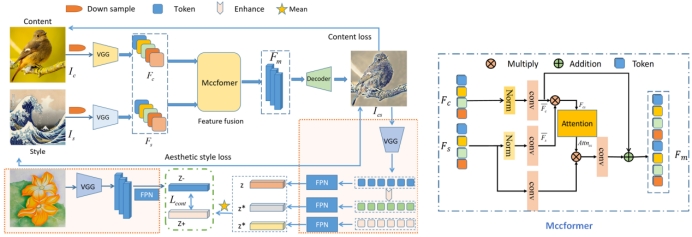 这篇论文提出了一种新颖的图像风格迁移框架。引入了一个新颖的风格转换框架,该模块可以将风格图像中的美学特征与内容图像中的细粒度特征进行融合,从而生成高质量的风格化图像。特征融合:Mccformer模块通过计算注意力分数,将内容图像和风格图像的特征图进行融合,有效避免了传统方法中常见的伪影问题。多尺度对比增强:通过引入多尺度对比增强模块,研究团队能够从大量图像对中学习风格表示,从而提高模型的训练效率并优化参数。新方法考虑了特定风格与整体风格分布的关系,显著减少了模型训练时间同时保持了生成图像的高质量。