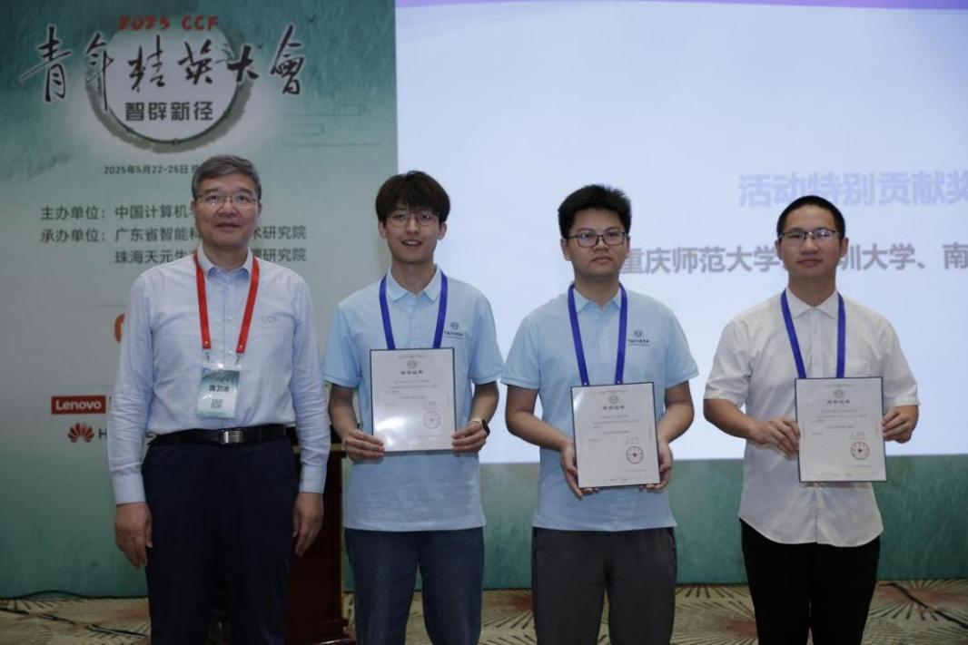 学生分会(以下简称CCF重师学生分会)派出代表陈俊杉、罗婉竹参加此次会议,不仅在交流中展现出积极进取的精神风貌,更凭借过去一年的突出表现,荣获“CCF活动特别贡献奖”。