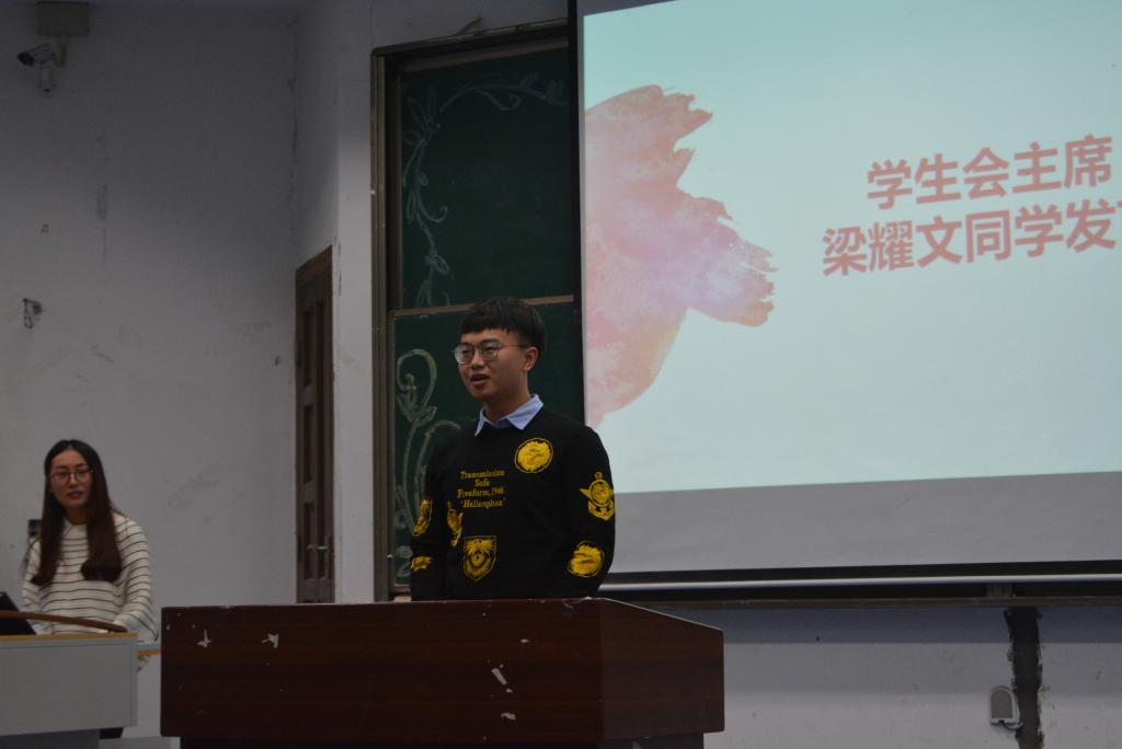 大会开始,钟华老师首先对新加入的一百二十名同学表示热烈欢迎,同时向第九届团学会的全体成员传达了她对大家的期待与厚望,并肯定了大家在这段时间的付出。而后,欧美a片 第九届团学会主席梁耀文就本次成立大会发表了自己的感想。这已经是他在团学会工作的第三年,他把团学会当成一个大家庭,每一位成员都是自己的家人。深情的语言感染着在场的每一个人。