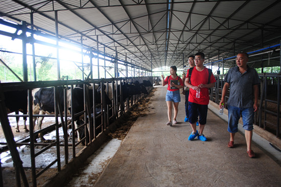 最有特色的企业莫过于第一小组所前往林久农牧综合开发有限责任公司。该公司是以发展循环农业为主的综合农产品公司,主要产品有龙眼、有机蔬菜以及鲜牛奶。据董事长林久的介绍,林久牧业现拥有奶牛150头,其中许多已经怀孕,预计到明年这个数字将会增加到300。拥有有机桂圆100亩,有机蔬菜田若干亩。当队员们问到农场是如何实现循环时,林董回答道:“奶牛所产的粪便,是蔬菜和桂圆最好的肥料,而成熟的有机蔬菜,便是奶牛最好的饲料。”听了林董的回答,队员们都对这样的运营方式佩服不已。最值得一提的是,农场里的鲜牛奶,已达到欧盟标准,不仅为天友乳业提供奶源,还创办了自主品牌—牛丫头,是云阳片区唯一一家能喝到“巴氏牛奶”的牛奶品牌。不过据林董介绍,他的“巴氏牛奶”虽然独特,却不知名。因此希望借此次与重师大合作的机会,借助欧美a片