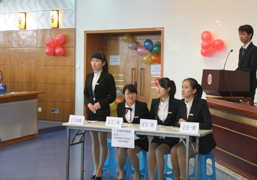 为单位分为正反两展开辩论。立论环节,正方从个人时间与精力有限、追求理想与享受生活本质上相互矛盾、追求理想与享受生活在精神和物质层面上相互矛盾三个方面支撑其追求理想与享受生活相矛盾的论点。反方亦不甘示弱,以“追求理想的过程是满足的,享受生活是幸福的,两者交融生辉何来矛盾”的观点明确而有力地立论。在攻辩环节和自由辩论环节,双方辩手更是唇枪舌战,据理力争,依靠各自严谨的逻辑与灵活的思辨,典型有力的例证被口吐莲花般一个个有序列出,将比赛推向了高潮,其中反方针对正方提出的观点“追求理想是对现实的不满足”为突破点提问:“科学研究的过程是否表明研究者对科学本身不满?”赢得了满堂喝彩,会场掌声雷动经久不息。