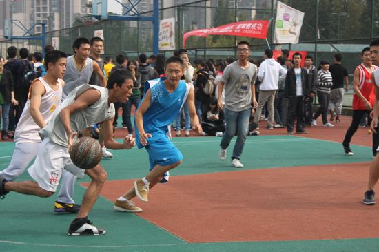 在一阵阵加油助威的呐喊声中,10级的两个队伍很快进入状态,场上的队员动作机敏,跨步潇洒,无论是运球,上篮还是后仰跳投,动作都十分标准,引起场上此起彼伏的雷鸣般的掌声。整个赛场上的氛围十分活跃,双方队员激情高涨,争夺激烈,你攻我守,将赛场上的比赛氛围推向了高潮。另一场的12级的两支队伍竞争得也相当激烈。电商队率先抢到了球,并成功的投进了篮筐,场上迎来了一片欢呼声,信管、计师队也不示弱,加紧追赶。双方你争我夺,你追我赶,在赛场上挥洒着奋斗的汗水,勾勒出英姿飒爽的弧线。场外两旁各班级的拉拉队队员各尽其力,为球员们呐喊,加油打气,他们的鼓励和支持给了球员们更多拼搏的动力。