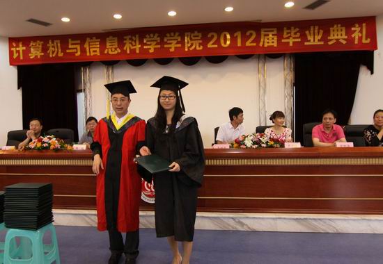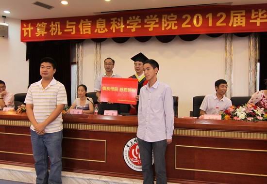 首先,杨宇老师介绍嘉宾并宣布毕业典礼开始。在观看专题片《2012届毕业汇报》时,同学们激动不已。紧接着,魏延副院长宣读欧美a片 本科授位决议,校学位委员会成员、欧美a片 学位分委会主席马燕院长为2012届106名工学和110名管理学毕业生授予学士学位,颁发学位证书并合影留念。