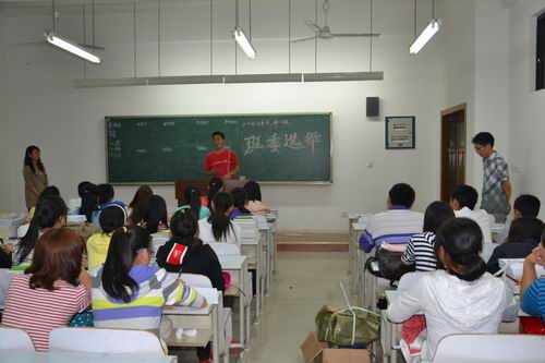 主持人提前到场布置场地,6:30准时进行点名,一一分发选票。首先由主持人做自我介绍,并从竞选流程与计票规则两个方面通告竞选情况。据悉,本届班委选举共设11个职位,分别是班长、团支书、组织委员、学习委员、宣传委员、文娱委员、生活委员(男)、生活委员(女)、纪律委员(男)、纪律委员(女)、体育委员。竞选者就各自竞选的职位进行现场报名演讲,演讲内容大致包括个人简历、工作表现、主要优缺点以及工作设想,大家各尽其能,创意百出,演讲态度或诙谐幽默、或严谨认真,演讲内容或简短精悍、或长篇大论。看得出各竞选者都经过了精心准备,尽情展示新一代大学生的精神风貌。总体看来,最能锻炼能力的班长、团支书两个职位的竞选者居多,其他职位也都有相应的竞选者。