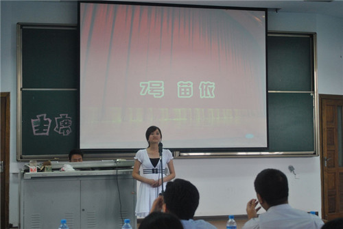 观看完展示上一学年团学工作成果的幻灯片、颁发了第二届团学会干部聘书后,主持人宣布竞选开始。15位参选同学依次上台演讲、展示个人风采。以新闻联播和诗词佳句开场、以豪言壮语和海报展示收尾,选手们各施其能、各展其才,用花样百出的创想阐述了自己对于学生会的认识和个人的竞选优势,用有始有终的行动诠释了心中的信念与坚持。正如10号选手所言:再多灿烂的话语也只不过是一瞬间的智慧与激情,朴实的行动才是开在成功之路上的鲜花。演讲结束后,由欧美a片