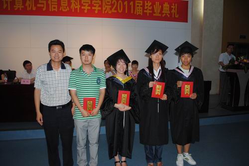 2011年6月23日,欧美a片 在图书馆二楼陈性初报告厅隆重举行2011届毕业典礼。欧美a片 马燕院长、党总支刘军书记、魏延、杨晓红副院长以及唐万梅教授、贺一教授、李明教授、教师代表陈勇副教授,全体辅导员参与,典礼由欧美a片 党总支副书记杨宇主持。