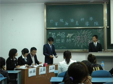 团总支学生书记孙柳艳、办公室主任赵越、通讯部部长冯李磊、文娱部部长杜莎莎以及优秀主持人王雪梅。组织部部长于洲担任了本赛场的主席,校欧美a片广播部部长戚宏涛作为嘉宾应邀参加了本次比赛。