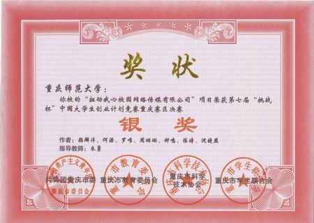 ——听障人士职业培训”、“快乐宝贝有限责任公司”、“重庆新世筷有限责任公司”等3件作品荣获重庆市金奖;“扭动我心校园网络传媒有限公司”荣获重庆市银奖;“重师众科软件系统开发团队商业计划”荣获重庆市铜奖。