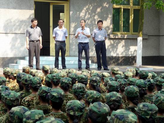领导慰问军训学生现场