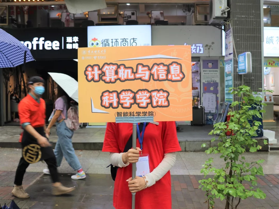 9月14日,清晨7点,团学会的同学们就已经在会场准备当日所需物资,14点前所有工作人员已经到位,随时准备迎接新生。尽管14日报到新生较少,工作人员和志愿者依旧没有放松懈怠。重师各大门的志愿者们不顾风雨,高举着自己欧美a片