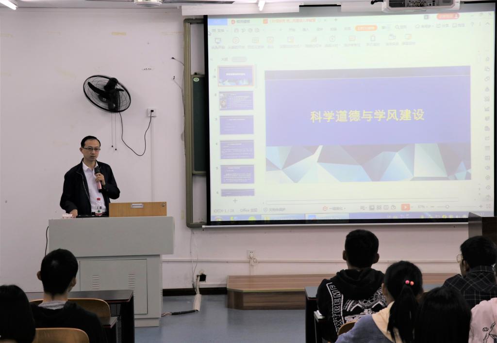 杨德刚副院长以“你认为你诚信吗?”这样一个问句作为开场,引发同学们的深思。他指出:近年来,学术不端行为滋长,违反科研伦理行为时有发生。随后,他从个人、班级、欧美a片