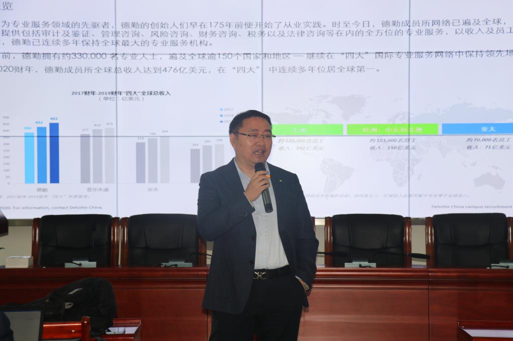 楼319室举行。宣讲会由德勤公司人力资源主任孙业鹏主持,17、18级学生参加。
