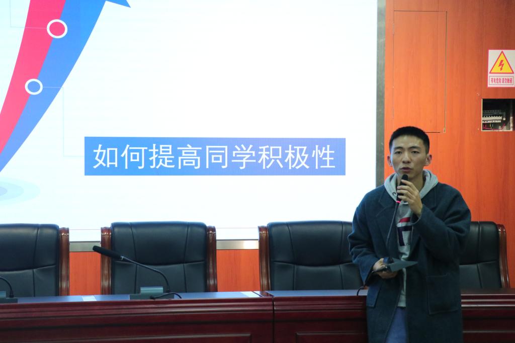 首先就“为什么同学参加活动少?如何提高同学活动积极性?”问题开展团学主题研讨,各部门积极讨论,上台发表看法与建议。紧接着主席团成员伍天池对学期学生工作月历进行讲解,针对本学期的部分活动日志安排做出强调。学生书记田镇齐进行年度总结报告,针对性讨论了重点问题,并提出完善方案。随后,志工部、组织部和创新部代表就上学期工作进行总结,并提出对新学期工作的设想和工作改进的方案。