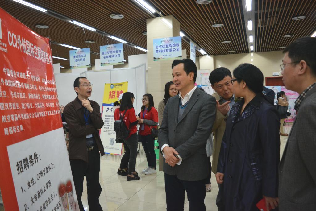 陈兰书记和魏延院长等活动负责人的陪同下,参观了招聘现场。校领导与个别企业代表交谈,并祝愿他们,招聘取得满意成果。