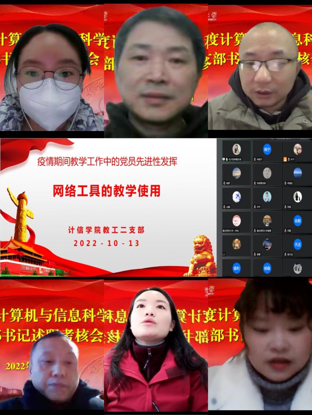 在腾讯会议召开2022年度党支部书记述职考核会,党委委员、纪委委员、党建组织员、党支部书记、支委委员参加本次会议,会议由党委书记陈兰主持。