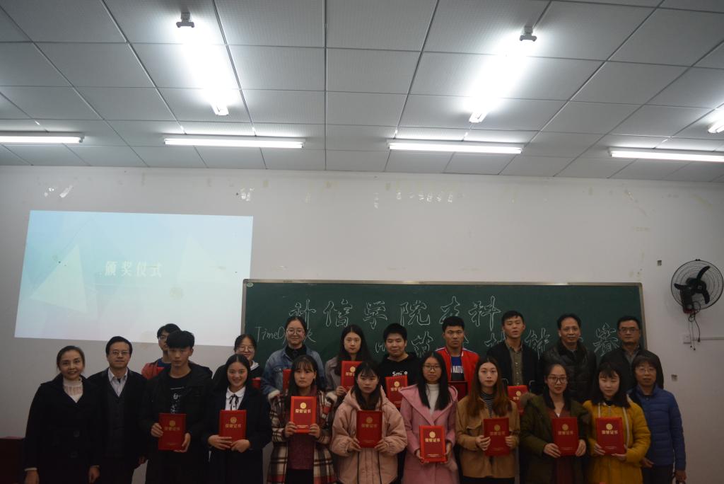 此次比赛共有15个团队参,通过现场展示参赛作品、产品详解以及评审团评审答辩三环内容对优秀作品和优秀团队评选。在比赛过程中,各参赛团队就其产品的功能、创意、所满足的社会需求等方面进行了详细介绍“传递大爱,你我同行”,16级软外专业陈丽洁以此为设计理念与团队建立了一个“义工加油站”网站。网站以简洁实用为主,让用户能了解到有关动物的信息,自己注册参与其中的活动。“麻辣火锅和热门景点,山城重庆在这等你”,17级信管叶沁及其团队设计了一个重庆旅游网站,就重庆的美食著名景点和文化历史作了详细的介绍,旨在让人们对重庆有更深的了解。为了方便用户处理学习和生活的问题,16级计科尹代秋及其团队创立了“律管家”微信公众号,并通过与评委和在场观众的互动向大家展示了公众号的具体功能,获得了评委的一致好评。