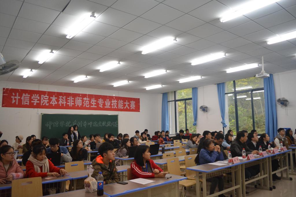 为了强化学生的技能训练,提高学生实践和创新能力,检验专业实践教学效果,展示专业风采,实现技能养成、学科竞赛、学生就业的有机统一。2018年11月15日15:00,欧美a片 在汇贤楼109教室开展了由团学会学习部主办、科研部协办的本科非师范生技能大赛。欧美a片 曾绍华老师、陈勇老师、沙轩老师、尚晋老师、兰晓红老师担任大赛评委。学习部副部尹世兴主持本次比赛。