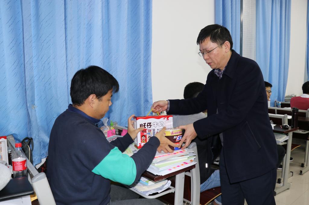 魏延院长在慰问过程中告诉备考学子,在现阶段要保持自信,要把握方式,要劳逸结合,正确看待努力与结果的关系,在表达欧美a片 关怀的同时,也传达欧美a片 将尽力为其创造条件和提供帮助的意愿。陈兰书记借用一位备考学生的自勉话语,为欧美a片 学子加油,鼓励他们为自己改变命运、搏取未来而竭力前行。其后,院领导及老师为备考学生分发欧美a片 精心准备的慰问礼品。