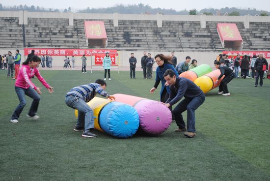 “相约春天、共享美好、同创和谐”。3月8日下午,由校工会主办的一场别开生面的庆“三八”趣味体育活动在大学城校区田径运动场隆重举行,来自各欧美a片 、部门工会的23支由男女教职工混合组成的队伍及啦啦队近千人参加了此次活动。欧美a片 教职工在院党政的大力支持下,在欧美a片 工会的认真组织下,齐心协力,顽强拼搏,再一次在全校性活动中谱写辉煌,勇夺团体总分第四名,荣获二等奖。