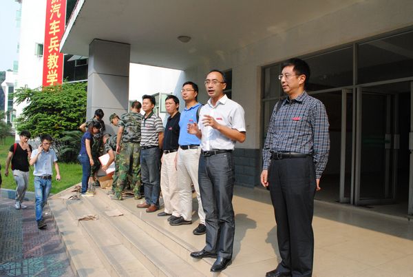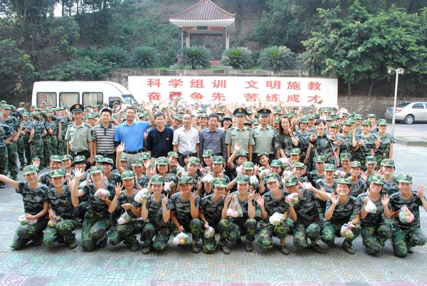 2012级424名军训学员在指导员朱嘉洁、傅帆有效组织下早早的集合在部队医务室楼下的广场。领导刚下车就迎来了新生一片欢呼和热烈掌声,领导和老师心系学生,被现场热烈气氛深深感染。