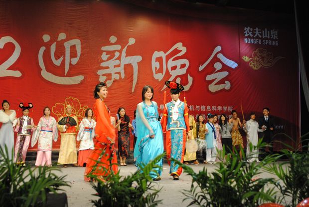 看,场上男男女女用那轻盈而娴熟的节奏,动感而激情的舞姿正在演绎着恰恰《Hole in my heart》,紧随其后的歌曲串烧《如果爱》和教师节目《格桑花》将晚会气氛推到高潮。扣人心弦的魔术《预言》,充满异域风情的《新疆舞》和古典舞《梦醉潇湘》,耐人深省的情景剧《丁香花》、《历史的天空》无一不感染在场的每一位观众,牵动着每一颗观众的心。嘻哈街舞串烧《舞客联盟》,霸气逼人rap《平民百万歌星》,优雅清新乐器合奏曲《burning》展示了年轻一代青春的曼妙多彩和无限热情,第四届团总支学生会的一场《时空之秀》更是呈现了集体创作的精美,形式新颖、妙趣横生、令人称绝。更有趣的是融合了小品和《江南style》的《计信好声音》令广大师生捧腹大笑,台下掌声阵阵,欢呼声一浪高过一浪。值得一提的是,晚会还特别设置了与观众游戏互动和微博互动的环节,同学们积极参与,充分体现了欧美a片 新生的青春风采。